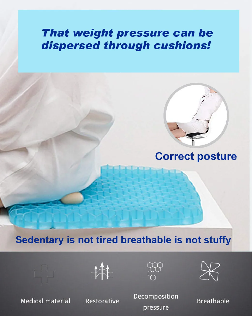 0219 Cushion Seat Flex Pillow, Gel Orthopedic Seat Cushion Pad (Egg Sitter)